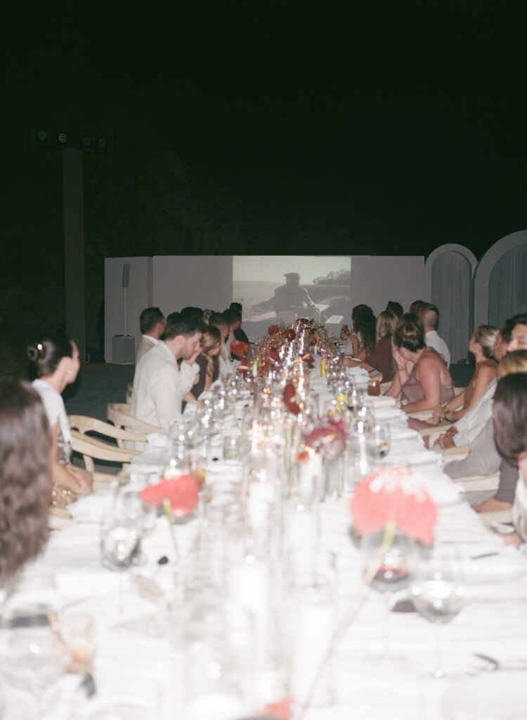 The couple collaborated with filmmaker Dougie Anthony to create a black-and-white documentary-style video that played before their reception entrance. Filmed throughout their favorite spots in LA and Malibu, the film offered a rare look into their private love story. There wasn’t a dry eye in the room.