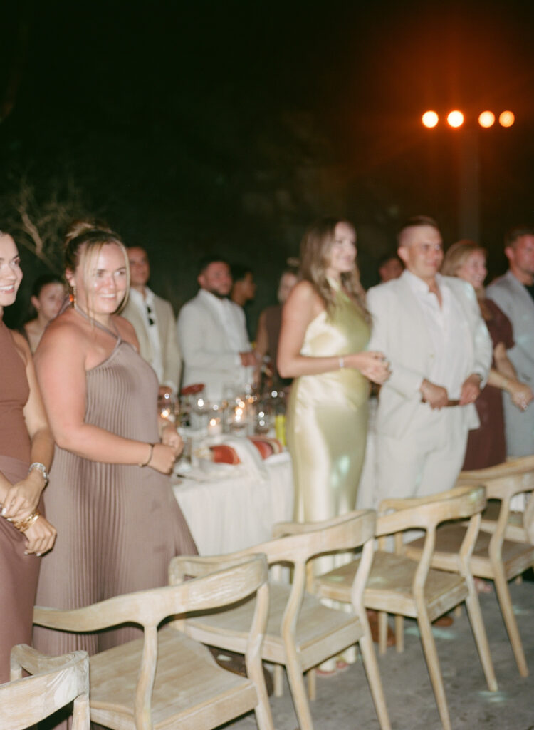 As the sun started to set, Eli’s aunt and cousin performed “The Blessing” by Elevation Worship while the couple stood beside their maid of honor and best man. Hands lifted in collective prayer, waves crashing below, it was a moment steeped in spiritual energy, designed to invoke presence and divine love.