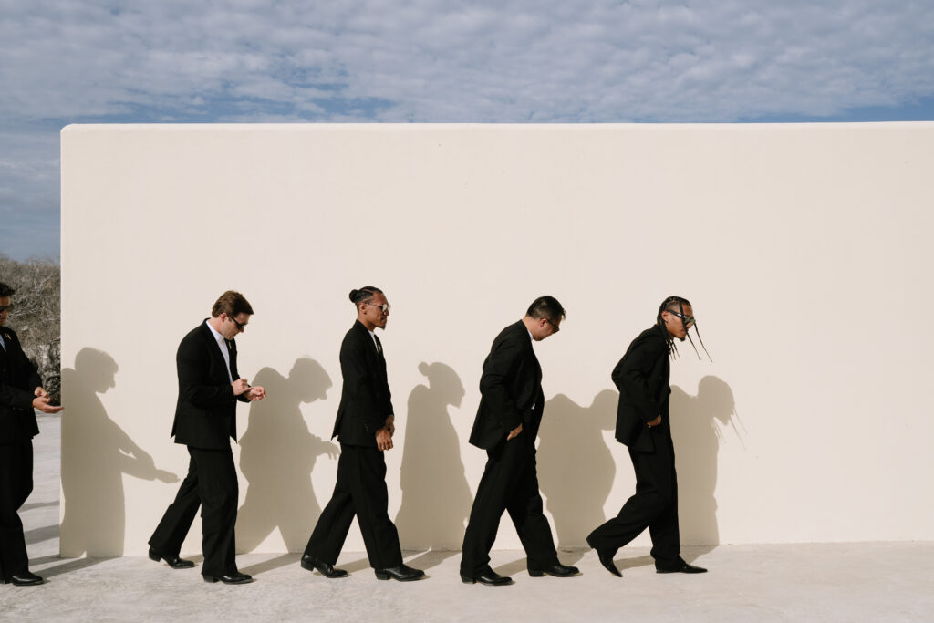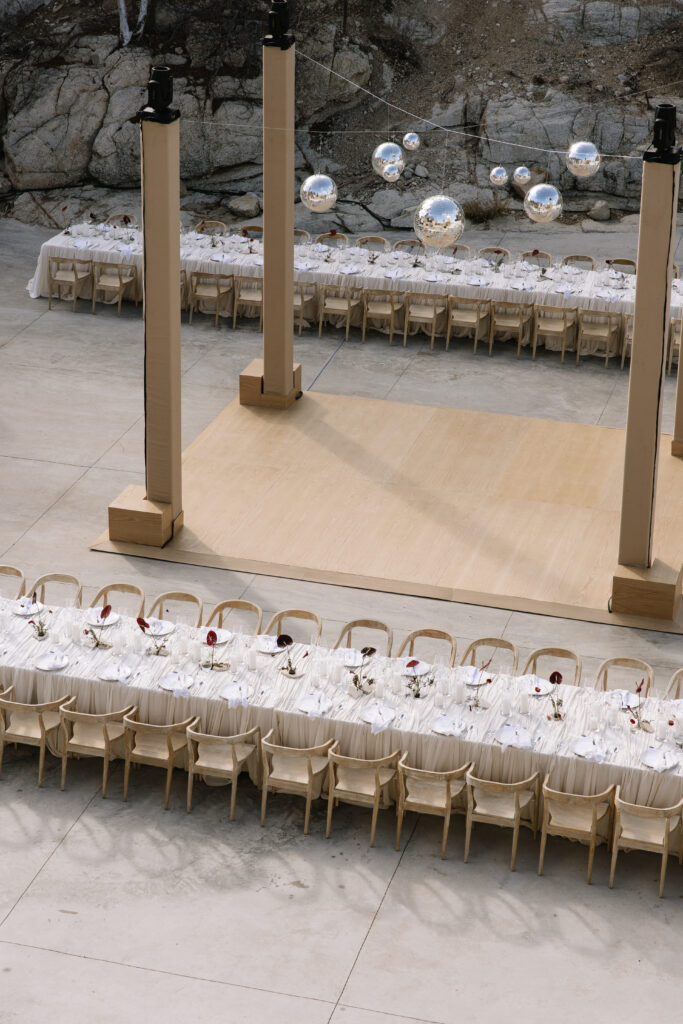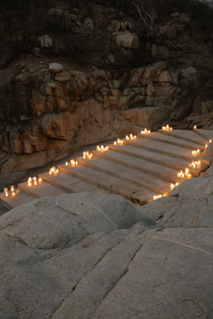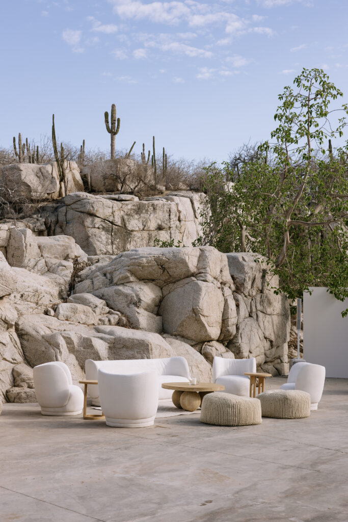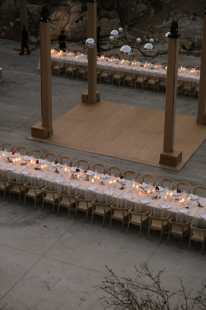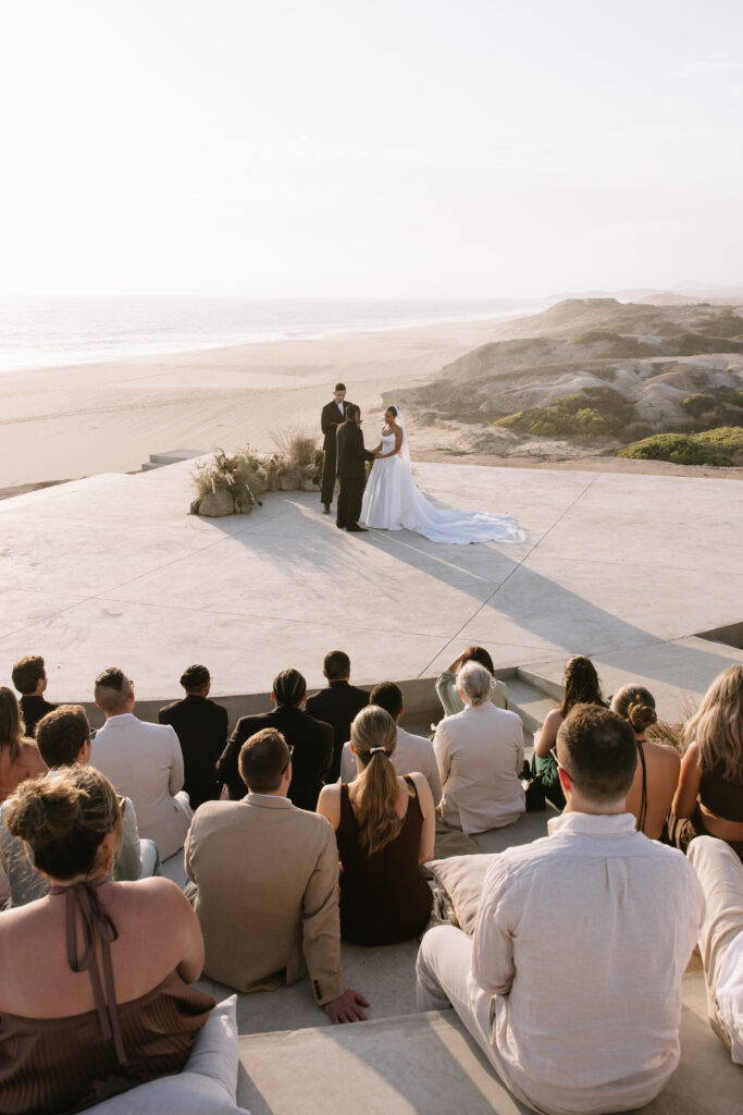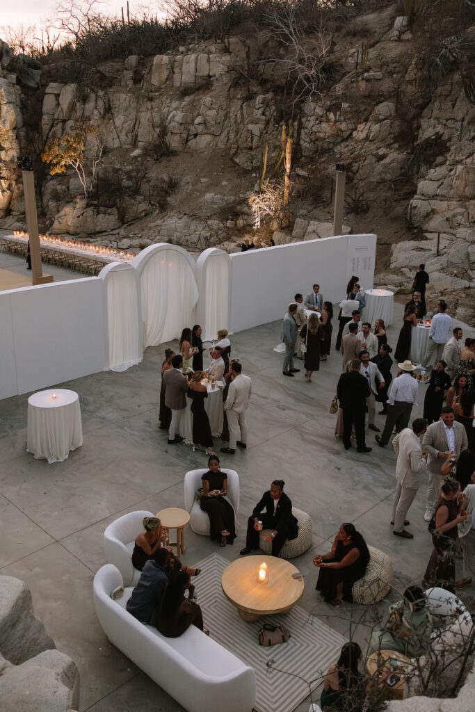 Guests were asked to wear earth tones in harmony with Cabo’s natural palette. The result was a dreamy, cohesive blend of colors that amplified the venue’s surrounding beauty and created a serene visual language throughout the day.