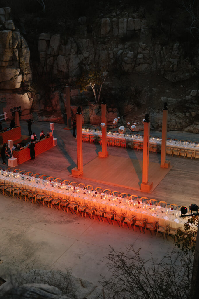 To heighten the sense of magic and momentum, the couple surprised everyone with a mid-reception performance featuring fire dancers and water drummers. A celebration of Cabo’s culture and a moment that turned the party into a spectacle.