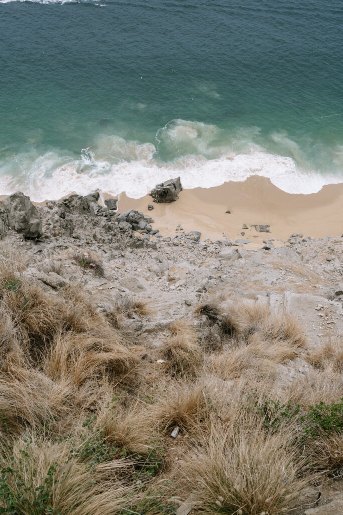 The ceremony began with the bridal party walking to “Young and Beautiful” by Lana Del Rey—the ocean crashing behind them, creating an atmosphere of cinematic emotion.